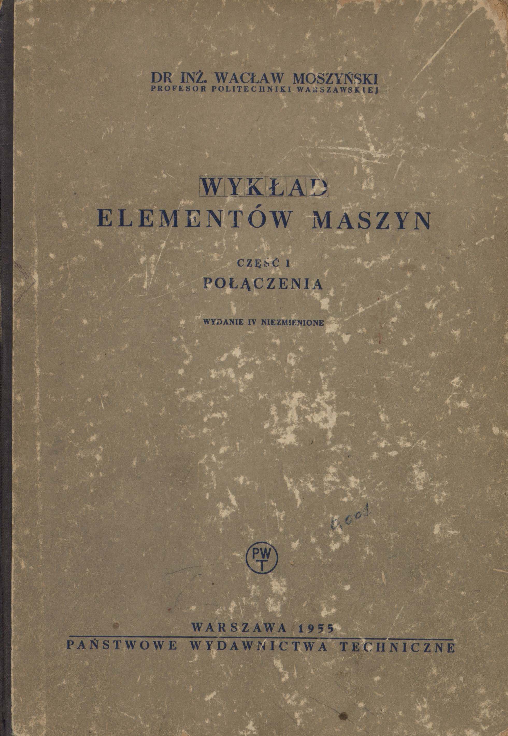Wykład elementów maszyn. Cz.1. Połączenia / Wacław Moszyński. - Wyd.4 niezm. - Warszawa : PWT, 1955. - 364 s., [1] k. złoż. : rys., tab., wykr. ; 25 cm.