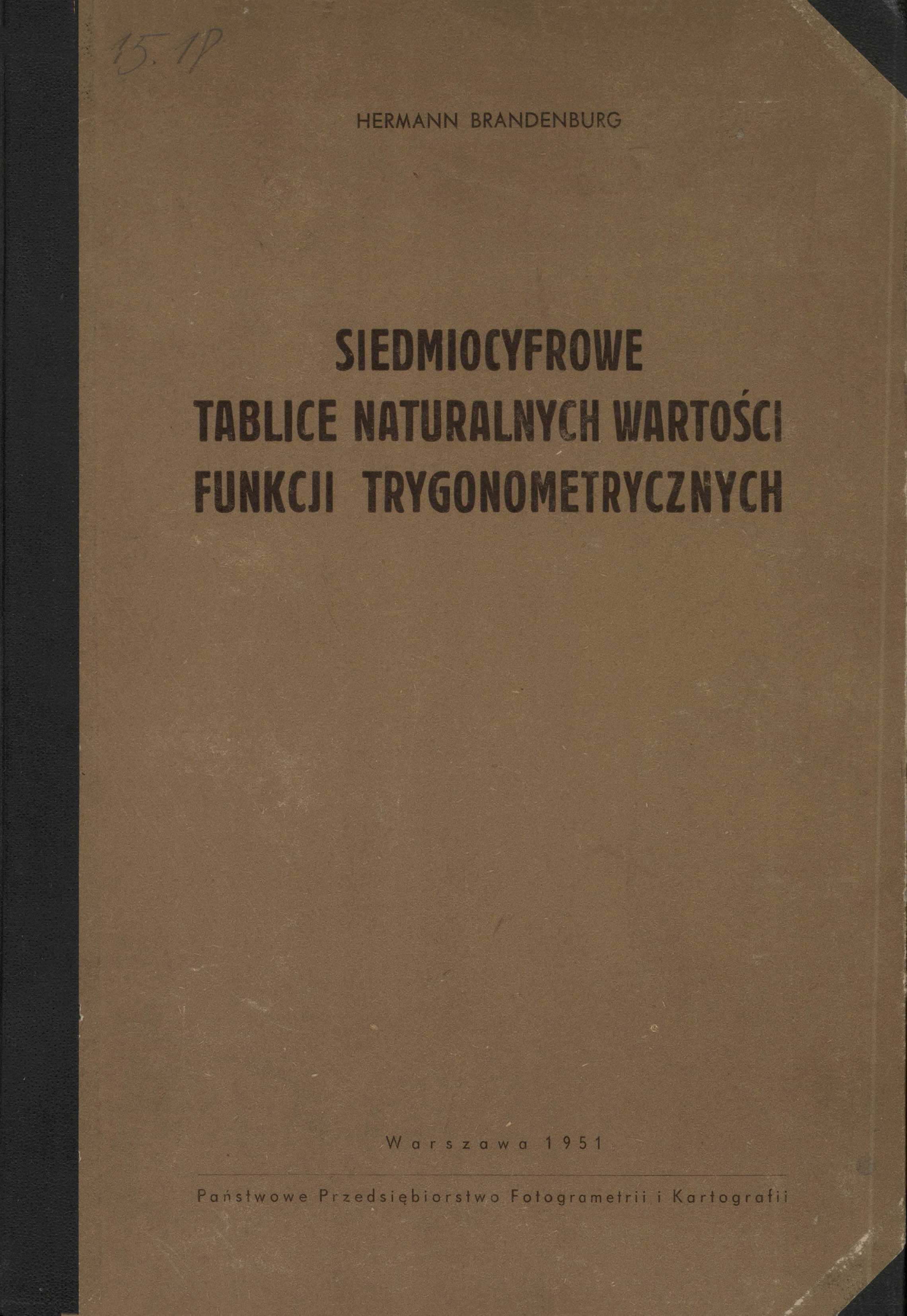 Tyt. oryg.: Siebenstellige trigonometrosche Tafel alter Kreisteilung für Berechnungen mit der Rechenmaschine