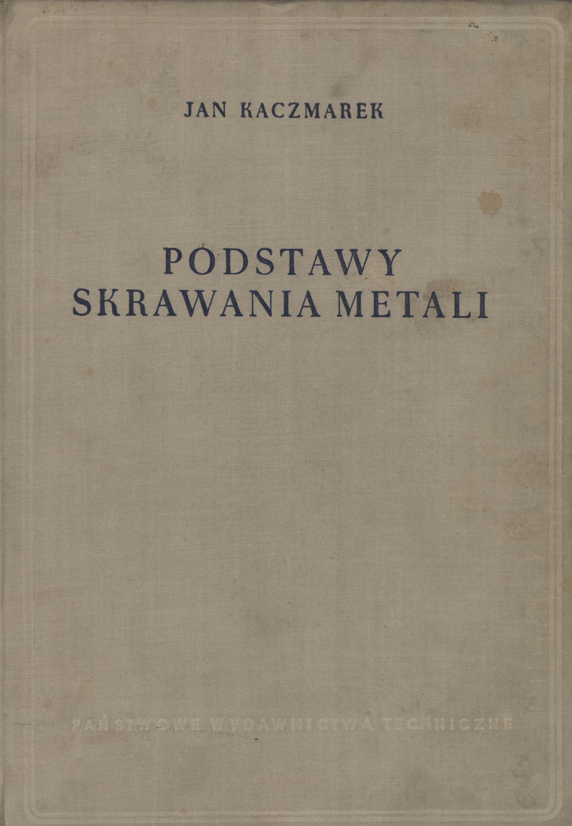 Podstawy skrawania metali / Jan Kaczmarek. - Warszawa : PWT, 1956. - XVI, 570 s., [2] k. złoż. : rys., schem., tab. ; 24 cm.