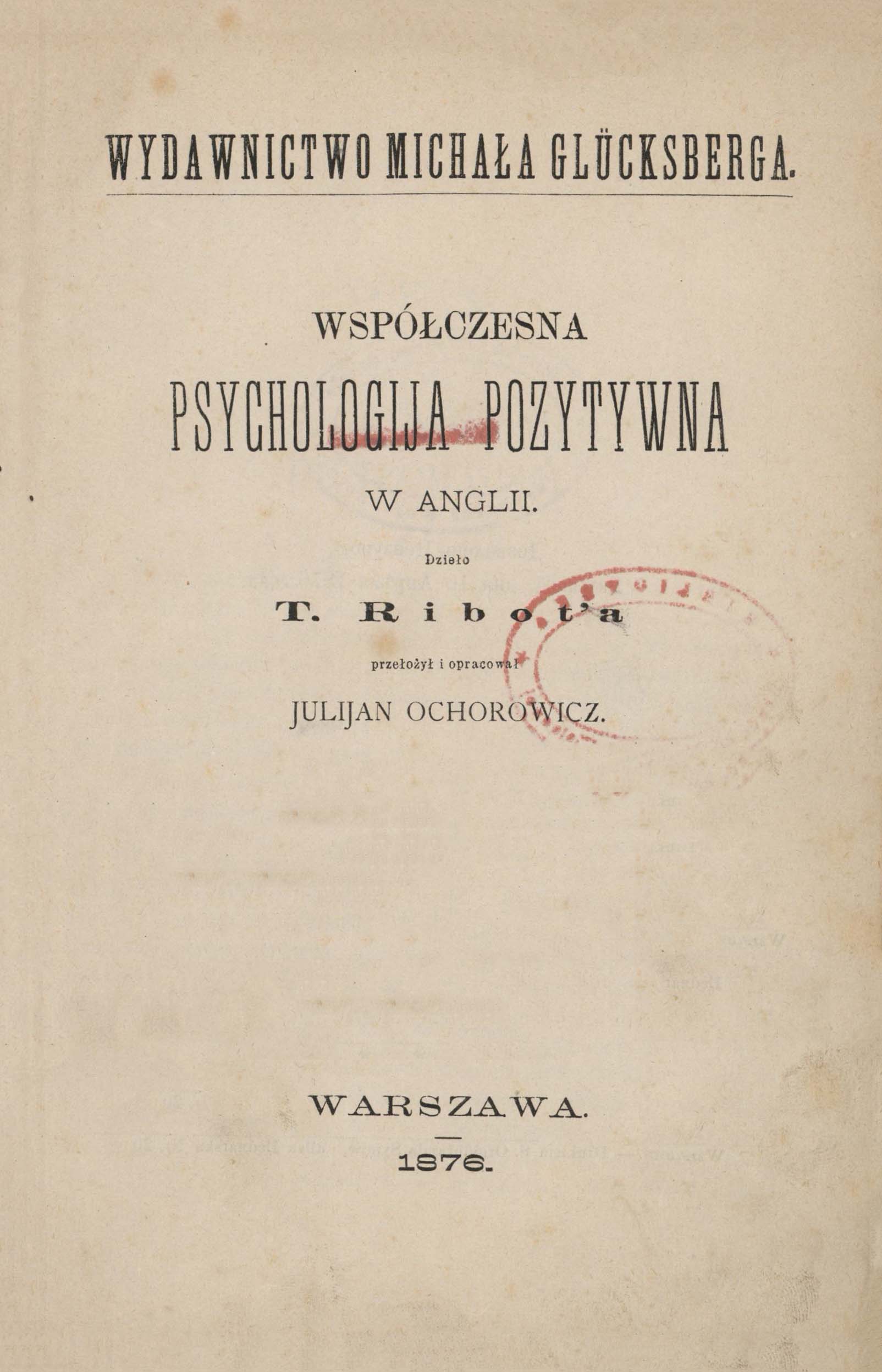 Tyt. oryg.: Psychologie anglaise contemporaine