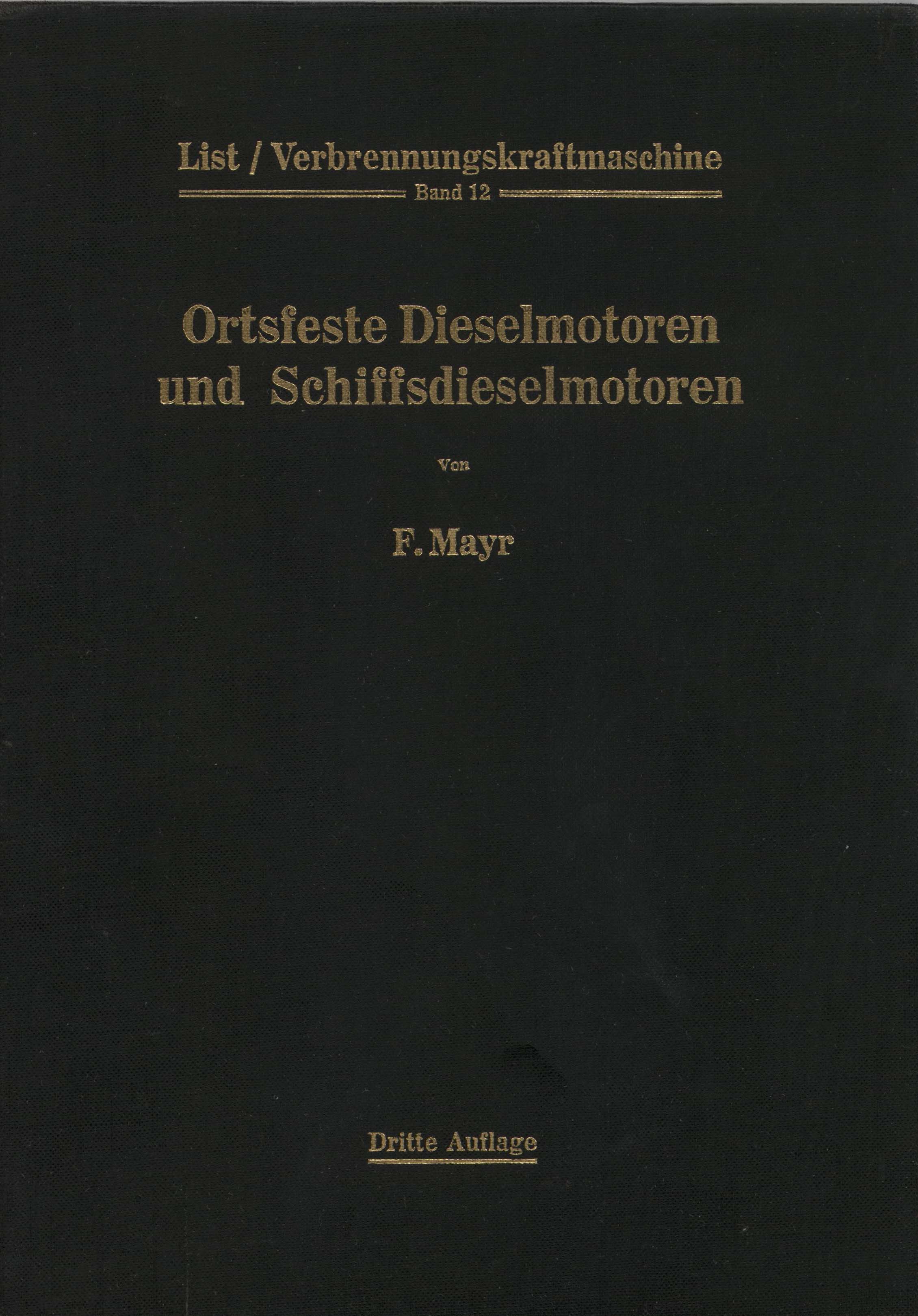 Ortsfeste Dieselmotoren und Schiffsdieselmotorem : mit 417 textabbildungen / F. Mayr ; hrsg. Hans List. - 3, völlig neubearb. u. erweit. Aufl. - Wien : Springer-Verlag ; 1960. - VIII, 471 s. : il., rys., tab., wykr. : 28 cm.