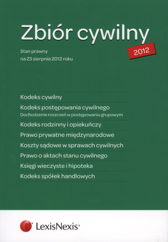 Zbiór cywilny / [oprac. red. Małgorzata Stańczak]. - Wyd. 3., stan prawny na 23 sierpnia 2012 roku. - Warszawa : LexisNexis Polska, 2012. - 1496 s. wiele liczb. ; 21 cm.