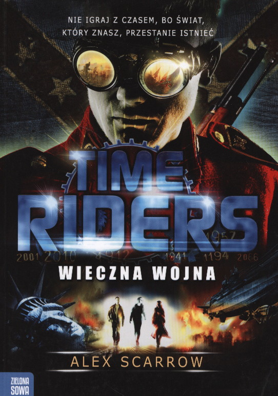 Tytuł: „Time Riders. Wieczna wojna” Tytuł oryginału: „Time Riders. The Eternal War” Autor: Alex Scarrow Wydawnictwo: Zielona Sowa Cykl: Time Riders (tom IV) Tłumaczenie: Karol Sijka Korekta: Magdalena Wosiek, Joanna Łapińska Projekt okładki: James Fraser Wydanie: I Oprawa: miękka Liczba stron: 455 Data wydania: 28.03.2014 ISBN: 978-83-7895-818-5 Źródło – książka.