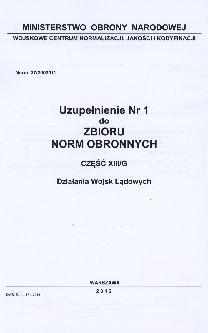 Uzupełnienie Nr 1 do Norm. 37/2003/U1.