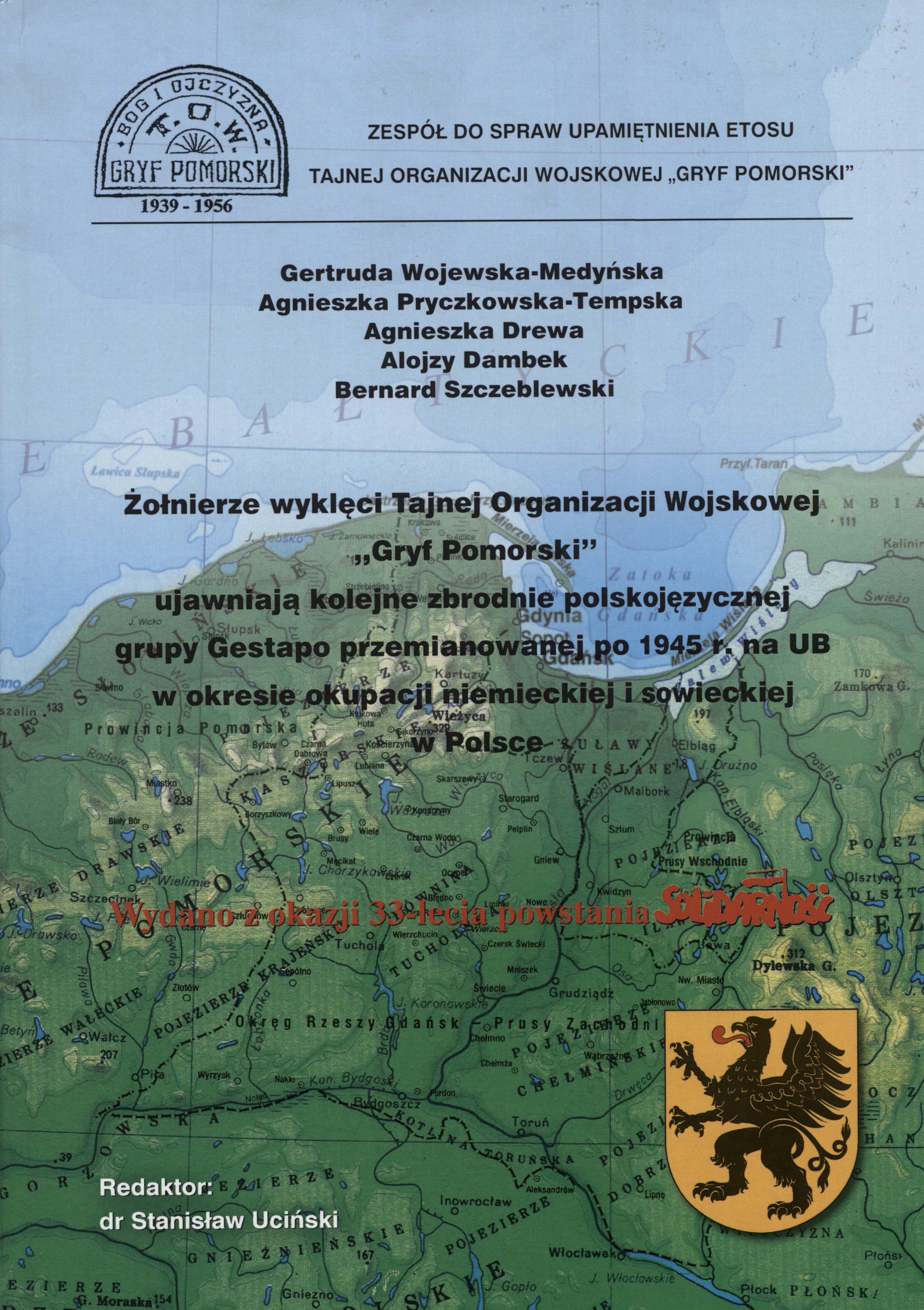Tyt. grzb.: Żołnierze wyklęci Tajnej Organizacji Wojskowej "Gryf Pomorski" ujawniają kolejne zbrodnie polskojęzycznej grupy Gestapo. Wyd. z okazji 33-lecia powstania Solidarności.