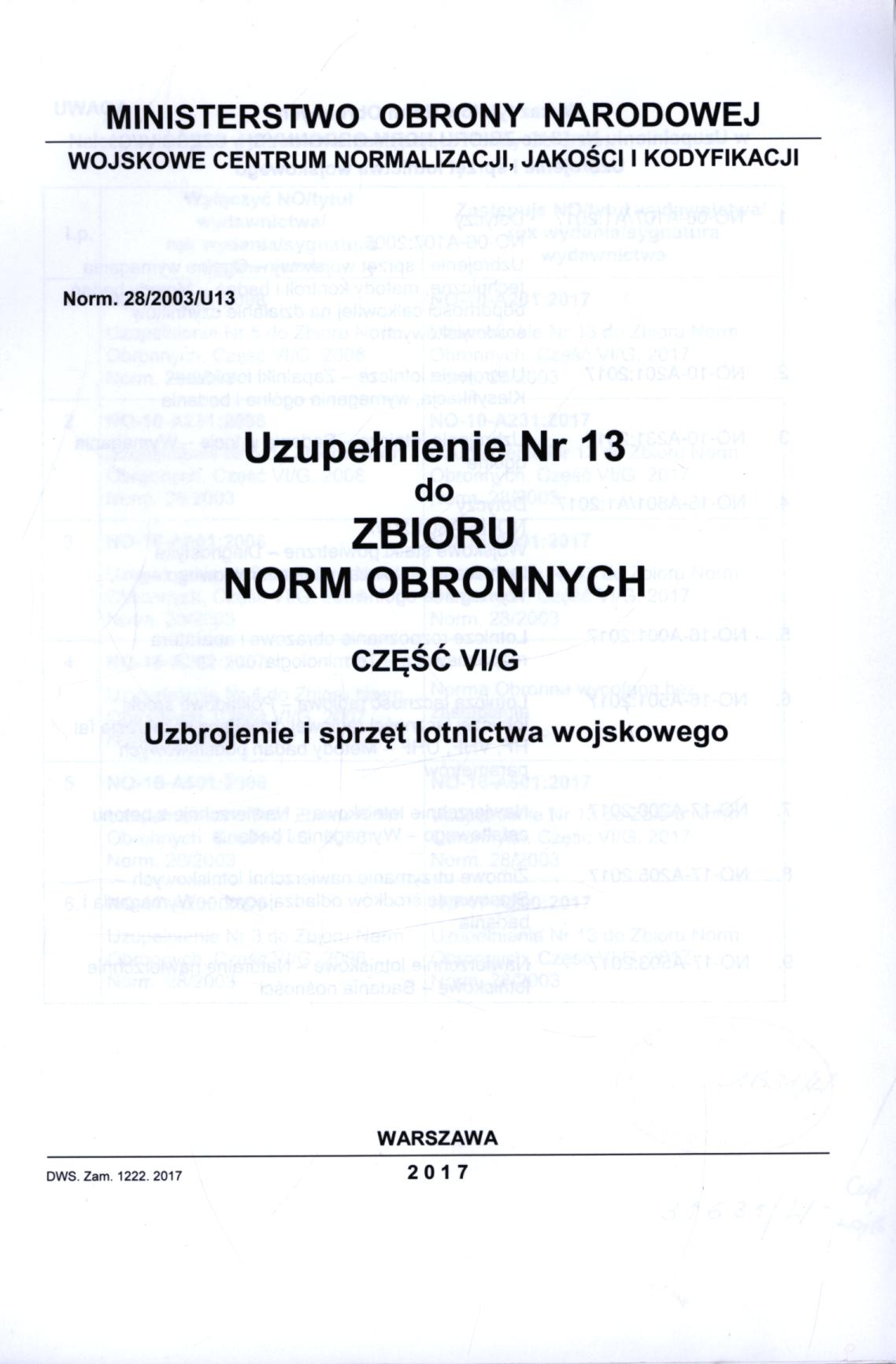 Uzupełnienie Nr 13 do Norm. 28/2003/U13.
