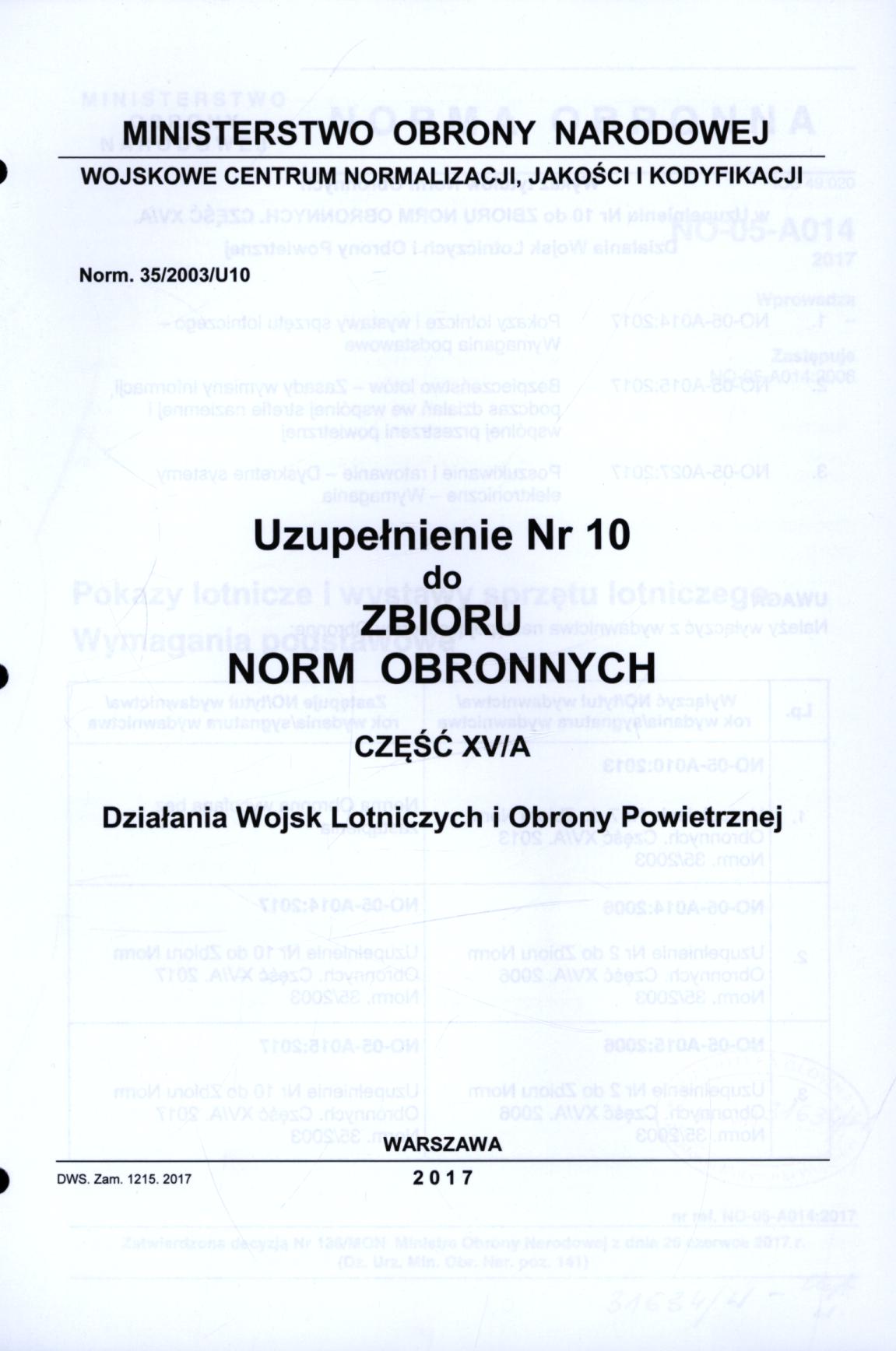 Uzupełnienie Nr 10 do Norm. 35/2003/U10.